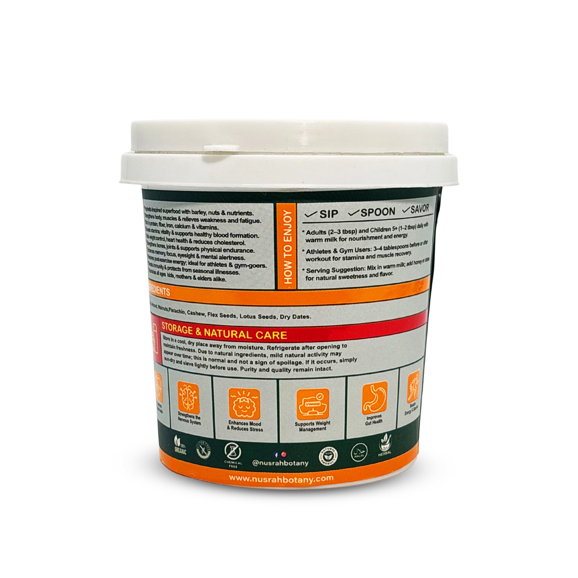 • Prophetic-inspired superfood with barley, nuts & nutrients.